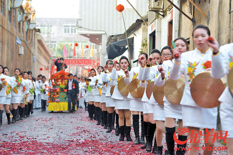 正月十六是汕頭澄海區(qū)埔美社區(qū)三年一次的大巡游,鑼鼓隊的打扮明顯也是現(xiàn)代化了,以前哪能露腿 林桂炎 陳小琳 攝