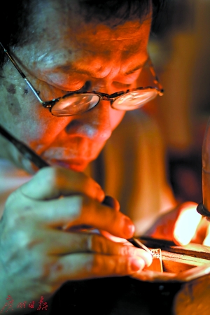 燙金絲印、公章膠印、原子印章……在和平西路9號(hào)有一家毫不起眼的刻章店——秋記刻章工藝,這里記錄著一段百年三代人的篆刻家族史。19世紀(jì)末期,叔公項(xiàng)信南隨著戲班來(lái)到廣州,成為一位金石篆刻名家;20世紀(jì)初,幼年喪父的項(xiàng)少南來(lái)到省城投奔叔叔項(xiàng)信南,也成為知名篆刻藝人,直到90歲高齡仍篆刻不輟;上世紀(jì)60年代,項(xiàng)少南之子項(xiàng)頌秋子承父業(yè),如今已入行57年。如今,隨著機(jī)器刻章的興起,從秋哥變成秋叔的71歲項(xiàng)頌秋卻面臨著手藝失傳?!叭绻幸懔Φ娜讼雽W(xué),我愿意免費(fèi)教學(xué)?!彼f(shuō)。