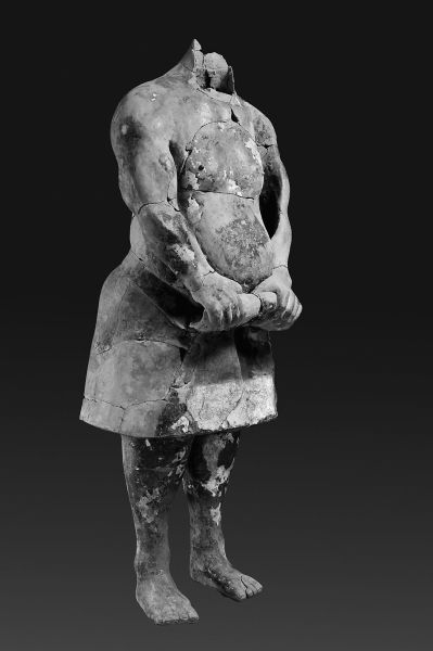 1999年,秦陵又有新驚喜——陵園東南角的百戲俑坑揭開了神秘面紗的一角。首次搶救性試掘,試掘面積僅72平方米,出土了目前在秦陵地區(qū)發(fā)現(xiàn)的體積、重量最大的一件青銅鼎以及11件陶俑。這些陶俑姿態(tài)各異,風(fēng)格、服飾、裝束等都與兵馬俑截然不同,多數(shù)上身赤裸、肌肉發(fā)達(dá),有的像持竿人,有的像角力者。經(jīng)過考證和研究,初步認(rèn)為他們可能是象征著秦代宮廷娛樂活動(dòng)的百戲俑。