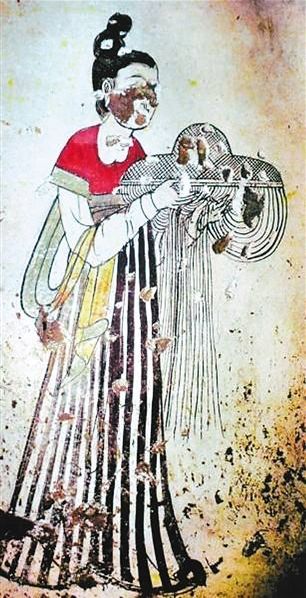 那么,唐初流行了幾十年的“羃”是什么樣子?從文獻(xiàn)記載看,它的特點(diǎn)是“全身障蔽”?!杜f唐書·李密傳》記載李密投降唐朝后再次反叛,帶領(lǐng)上千士兵,化妝成女性,戴羃,羃內(nèi)藏刀,到縣城后,變裝持刀殺出,占領(lǐng)了縣城。我們可以設(shè)想一下,上千“女性”穿戴著羃在道路上行走,路人不僅不以為怪,而且不知是士兵,可見“羃”的流行,以及遮蔽之嚴(yán)。可惜的是,目前從文物資料中還找不到“羃”的確切形象。1990年,在盜掘后的唐太宗燕妃墓壁畫中,有一幅被考古工作者定名為“捧羃女侍圖”,似乎仕女捧的是“羃”。