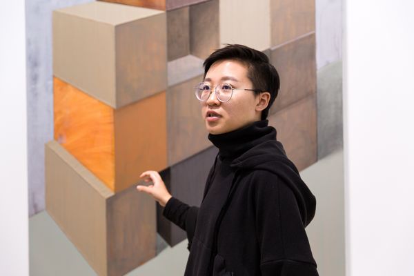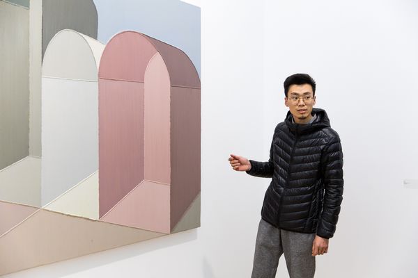 藝術(shù)家趙新宇,1989年出生于內(nèi)蒙古,2012年畢業(yè)于四川美術(shù)學(xué)院油畫系。趙新宇最早的創(chuàng)作,即為人所知的“車廂”系列,涉及了一種日常經(jīng)驗,后續(xù)階段的作品以情緒性和敘事性為底色,而使得整個畫面頗具戲劇色彩。在新作當(dāng)中,這一痕跡的延伸則是趙新宇似乎試圖通過對畫面結(jié)構(gòu)的編排,對比之前的作品,依舊是在構(gòu)景,但卻在逐漸在取締物的現(xiàn)實性因素。新作當(dāng)中技法的轉(zhuǎn)變,厚涂式的平推僅保留了一部分,新作當(dāng)中的轉(zhuǎn)向在某種程度上僅僅構(gòu)成了對于厚涂畫法的一個對立面發(fā)生,像是一次新的開場,畫面本體基本問題再次噴涌而來,在這一情形下,趙新宇通過對于框架結(jié)構(gòu)式描繪的轉(zhuǎn)向,試圖引向一種對于畫面心理的感知。