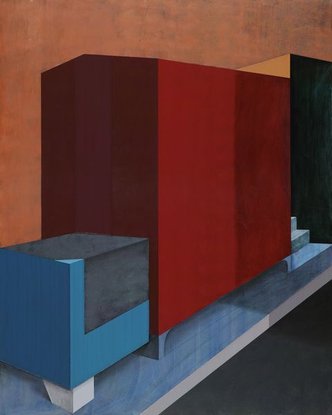趙新宇從以往的作品中提取出了作品畫面的三個基本空間模型,“凹”“凸”“平”,并且在此次個展作品當(dāng)中非??桃獾囊载Q構(gòu)圖來強化這一理式概念,甚至試圖探究以往作品如果以一種“剩余”的狀態(tài)呈現(xiàn),意義生成的核心會發(fā)生怎樣的轉(zhuǎn)變?!妒彝?1垂直,傾斜》右下角垃圾箱輪子的處理,是以暗色塊暗示了原物的形態(tài),并沒有再做深入的刻畫,而實際上這一形態(tài)往往是作品底層的保留;《室外#3》右上部,你可以說是割破了的畫面,或者是基于無意識的,總之對于結(jié)構(gòu)穩(wěn)定的畫面而言,像極了一次意外的產(chǎn)物。在某種意義上它超越了象征界,也即超越了經(jīng)驗所能夠涵蓋的內(nèi)容。但是新作當(dāng)中似乎更有新的趨向,比如《室外#3》和《室外#4》兩件作品,一件觸及畫面的變形,另一件暖色調(diào)的嘗試則引發(fā)了某種藉里科式的憂郁,或許這是匱乏和剩余的并發(fā)癥,某種飄散的內(nèi)容甚至帶給人一種訴諸作品本身相反的感受。