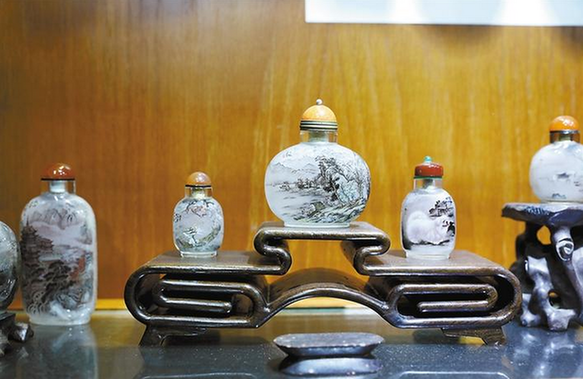 據(jù)楊藝介紹,明末清初,鼻煙作為貢品開(kāi)始傳入我國(guó),這些進(jìn)貢的鼻煙用玻璃瓶盛裝,以防止其味道散失,并以瓶的大小標(biāo)示鼻煙計(jì)量。王士禎在《晉祖筆記》中記載:“鼻煙以玻璃為瓶貯之。瓶之形象種種不一,顏色具紅黃紫白黑綠諸色,白如水晶,紅如火齊,極可愛(ài)玩,以象齒為匙,就象鼻之,遠(yuǎn)納于瓶?!彼耐怀鲐暙I(xiàn)就在于,把紙上畫(huà)和寫(xiě)的藝術(shù),經(jīng)過(guò)工具、操作等多方面的革新,改在為玻璃或水晶煙壺內(nèi)壁反面上作畫(huà),其難、其奇,真可謂巧奪天工。內(nèi)畫(huà)煙壺的創(chuàng)作在光緒年間達(dá)到鼎盛。收藏界認(rèn)為它集中國(guó)工藝美術(shù)之大成的袖珍藝術(shù),是詩(shī)書(shū)畫(huà)并茂的藝術(shù)精品。