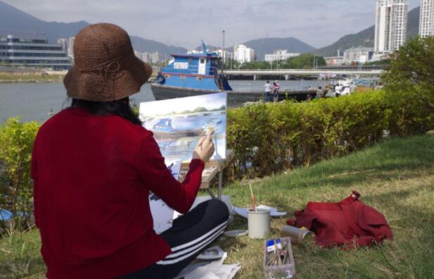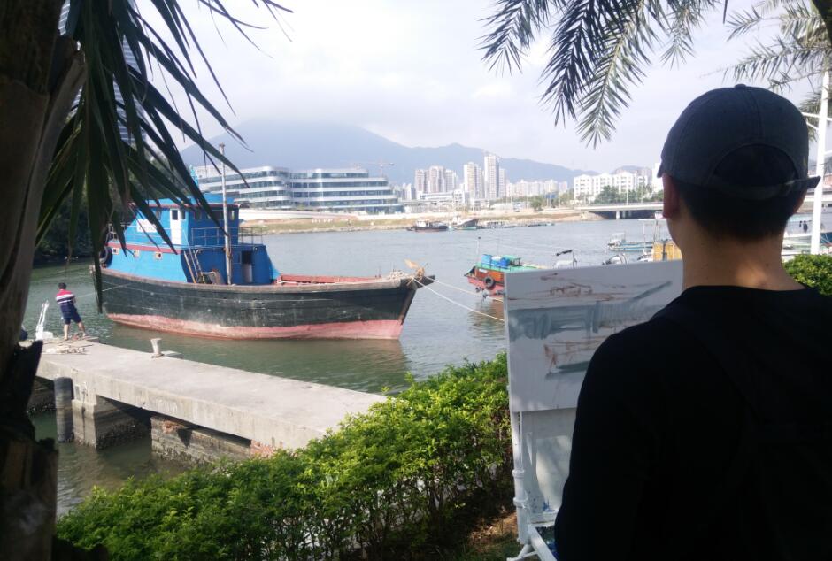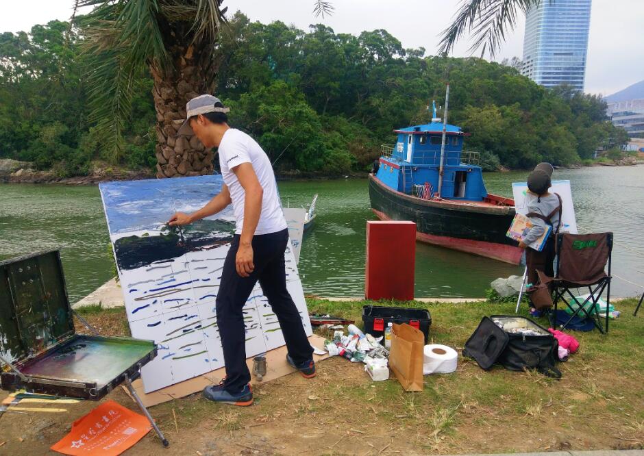 優(yōu)美的景色映入畫(huà)家們眼簾,點(diǎn)燃了他們的創(chuàng)作激情。來(lái)到鹽田之后,藝術(shù)家們紛紛找好寫(xiě)生地點(diǎn),擺好畫(huà)架,迅速進(jìn)入創(chuàng)作的狀態(tài)。他們當(dāng)中一部分來(lái)到了鹽田漁港,鹽田海鮮街后的小漁村避風(fēng)港。蔚藍(lán)的大海、旁邊的綠樹(shù)、避風(fēng)塘內(nèi)停泊的船只、白色的海鳥(niǎo)、釣魚(yú)的人以及遠(yuǎn)方火熱的建設(shè)場(chǎng)景都呈現(xiàn)在畫(huà)家的筆端;另一部分藝術(shù)家來(lái)到了位于三洲田深圳會(huì)計(jì)進(jìn)修學(xué)院的梧桐溪谷,小橋流水人家、奇石山林則一一被傾注于畫(huà)紙。
