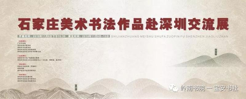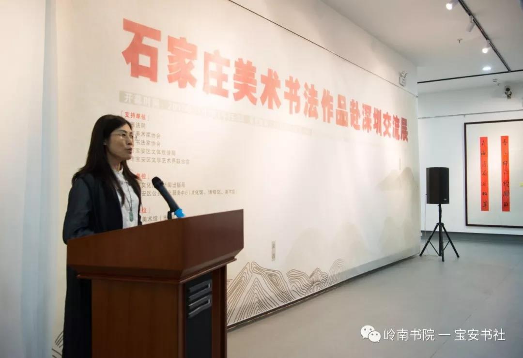 2018年11月8日下午15:00,由石家莊市文化廣電新聞出版局、深圳市寶安區(qū)公共文化服務中心(文化館、博物館、美術(shù)館)主辦,石家莊市美術(shù)館(市畫院)、嶺南書院、深圳寶安書法藝術(shù)研究社承辦,深圳市寶安區(qū)圖書館、寶安區(qū)美協(xié)、寶安區(qū)書協(xié)協(xié)辦并得到深圳市書法家協(xié)會、美術(shù)家協(xié)會、寶安區(qū)文體旅游局、寶安區(qū)文聯(lián)的大力支的 “ 石家莊美術(shù)書法作品赴深圳交流展 ” 在深圳市寶安區(qū)圖書館負一樓展廳隆重開幕——
