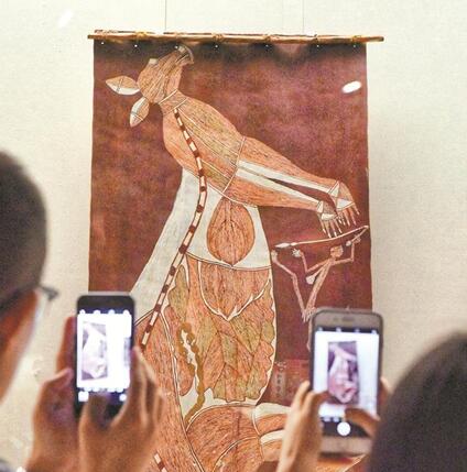 樹(shù)皮畫(huà)是人類(lèi)一項(xiàng)古老的藝術(shù),也是澳大利亞原住民延續(xù)保留至今的一種藝術(shù)形式。澳大利亞的樹(shù)皮畫(huà)承載了深厚的文化和思想內(nèi)涵,被稱(chēng)為是“活著的”原始繪畫(huà)。本次展覽展示了位于澳大利亞北海岸線(xiàn)的阿納姆地原住民藝術(shù)家創(chuàng)作的120余件樹(shù)皮繪畫(huà),以及繪制工具、木雕木刻等,反映了澳大利亞原住民對(duì)世界的理解和認(rèn)識(shí),以及他們的生活習(xí)俗、精神世界與文化傳統(tǒng),也展現(xiàn)了澳大利亞原始藝術(shù)的鮮明特色。