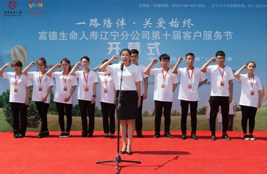 2016年7月3日,富德生命人壽第十屆客服節(jié)開幕式在遼寧省沈陽市中山公園隆重舉行。分公司總經(jīng)理助理曹營女士、相關(guān)部門經(jīng)理、內(nèi)外勤員工、媒體、客戶代表,以及參加繪畫大賽的孩子、家長等100多人參加了開幕儀式。