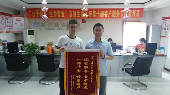 6月27日富德生命人壽鐵嶺中支迎來了一位特殊的客人,李先生的愛人雙手捧著“優(yōu)質(zhì)服務(wù)、雪中送炭,一諾千金、情系客戶” 的錦旗,非常激動(dòng)的說:“多虧有富德生命保險(xiǎn),使我們本來不富裕的家庭,在有難的時(shí)候,讓我們的生活有了保障,讓我愛人的后續(xù)治療有了保障,還是保險(xiǎn)好?!?/p>
