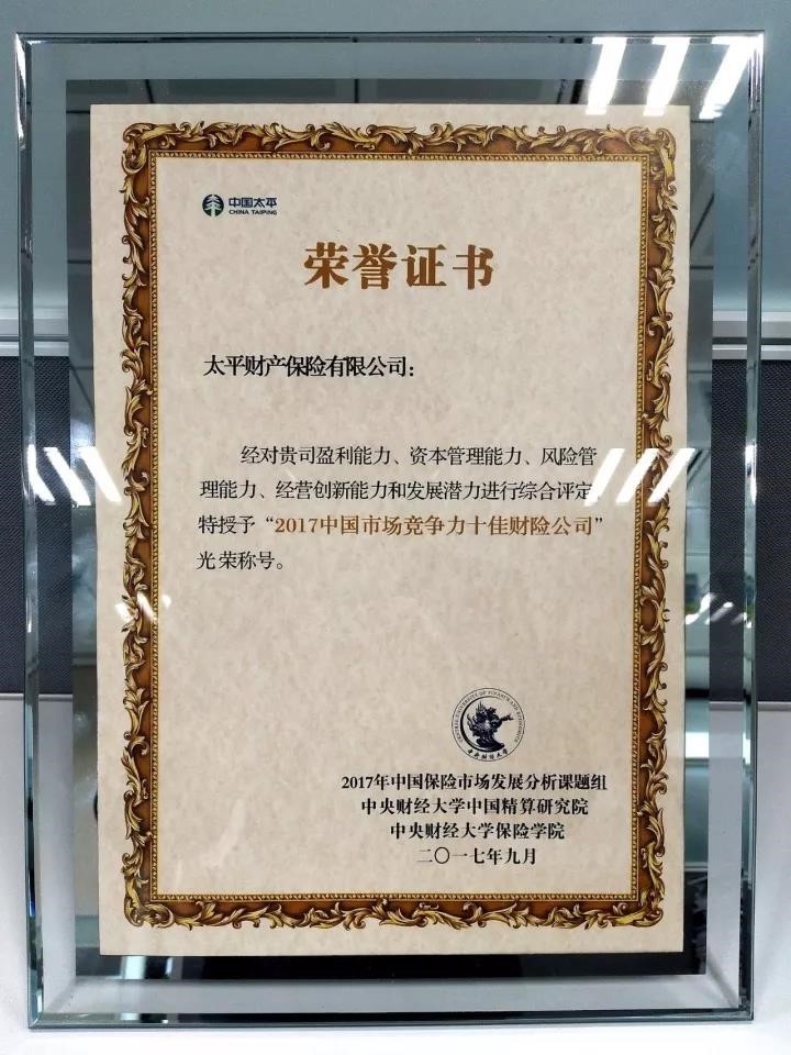 10月13日,由中央財經(jīng)大學中國精算研究院、保險學院主辦的“第三屆中國保險市場發(fā)展圓桌論壇”在北京圓滿落幕,論壇揭曉了由“2017年中國保險市場發(fā)展分析課題組”評選的“2017中國市場競爭力十佳保險公司”榜單。作為財險行業(yè)唯一連續(xù)五年跑贏大市且承保盈利的市場主體,太平財險在該具有濃厚學術色彩的評估中,憑借盈利能力、資本管理能力、風險管理能力、經(jīng)營創(chuàng)新能力和發(fā)展?jié)摿Φ确矫娴膹妱荼憩F(xiàn),再度被評為“中國市場競爭力十佳財產(chǎn)險公司”。