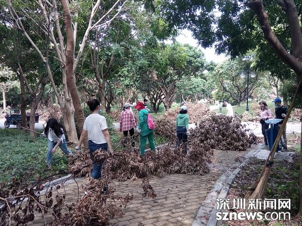 9月22日,臺風(fēng)過后小長假的第一天,深圳農(nóng)村商業(yè)銀行積極響應(yīng)深圳市城管局和人大代表“人人行動,一起清潔美麗家園”的倡議,在全行發(fā)起了“愛心清理中心公園,還深圳一片干凈祥和”的志愿活動,全行70多名員工和家屬自發(fā)組成義工隊,利用中秋小假期來到深圳市中心公園,積極參與搬運殘枝斷木,清潔落葉垃圾的活動。在清理公園路障過程中,深圳農(nóng)商行員工分工明確,男士負(fù)責(zé)倒塌樹枝、樹樁的疏通與清理,女士則主要負(fù)責(zé)零散枝丫、落葉的清掃。而當(dāng)清理至公園受災(zāi)最嚴(yán)重區(qū)域時,深圳農(nóng)商行義工隊成員齊上陣,兩手并用,或是用力拖拽巨大的倒塌樹枝,或是通力協(xié)作抬抱沉重的實木樁,來來回回不斷將攔路樹枝收拾整齊歸攏到路邊,以方便公園管理處人員后續(xù)處理。此次清理工作持續(xù)了約3小時,基本恢復(fù)了公園中心區(qū)綠道的通暢與整潔。路過的行人得知他們是義務(wù)進(jìn)行清理時,無不駐足稱贊,而參與此次活動的所有深圳農(nóng)商行人也同樣為自己感到驕傲。