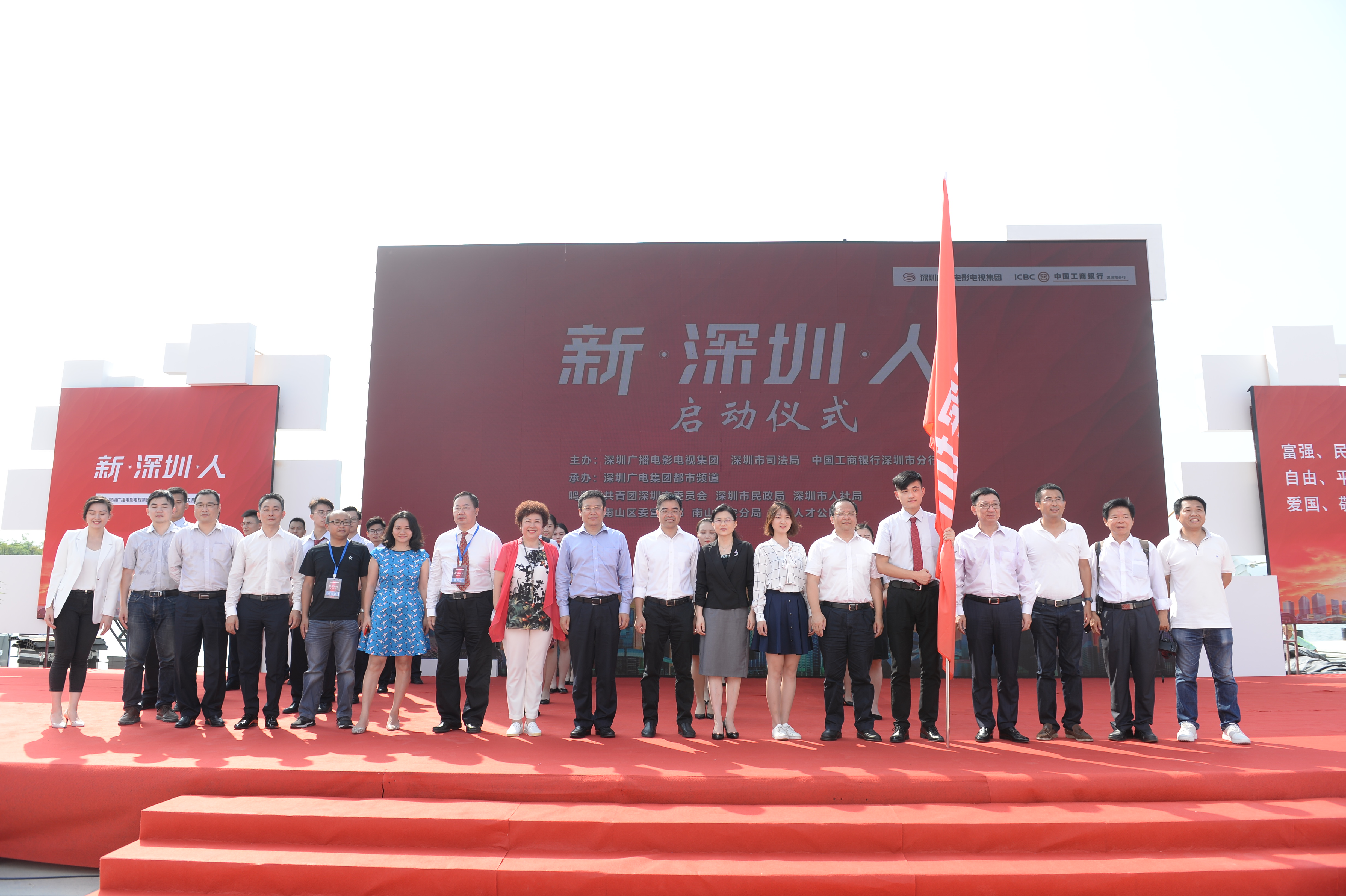 9月21日,“新·深圳·人”在深圳人才公園潮汐廣場迎來了啟動儀式,深圳市政協(xié)副主席黎軍、深圳市司法局黨委書記、局長蔣溪林,深圳市委宣傳部副部長王楚宏,團(tuán)市委辦公室調(diào)研員李霄霞,深圳廣電集團(tuán)總裁岳川江,中國工商銀行深圳市分行黨委書記、行長徐守本,中國工商銀行深圳市分行副行長駱偉華,以及各行各業(yè)的代表出席了啟動儀式。