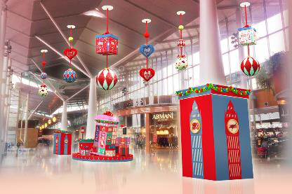 據(jù)介紹,圣誕節(jié)期間東薈城名倉店將以英國國旗上的紅藍(lán)白為主調(diào),在場(chǎng)內(nèi)掛滿十多組吊飾,各處均充滿英倫氣息。而2樓天橋位置,更將化身為倫敦街頭,有大本鐘報(bào)上八個(gè)城市的時(shí)間;傾斜的電話亭玩味十足,滿布流行藝術(shù)圖案,而顯示屏也會(huì)不斷送上圣誕祝福;還有換上圣誕新裝的英國士兵,整裝與大家互動(dòng)過圣誕。