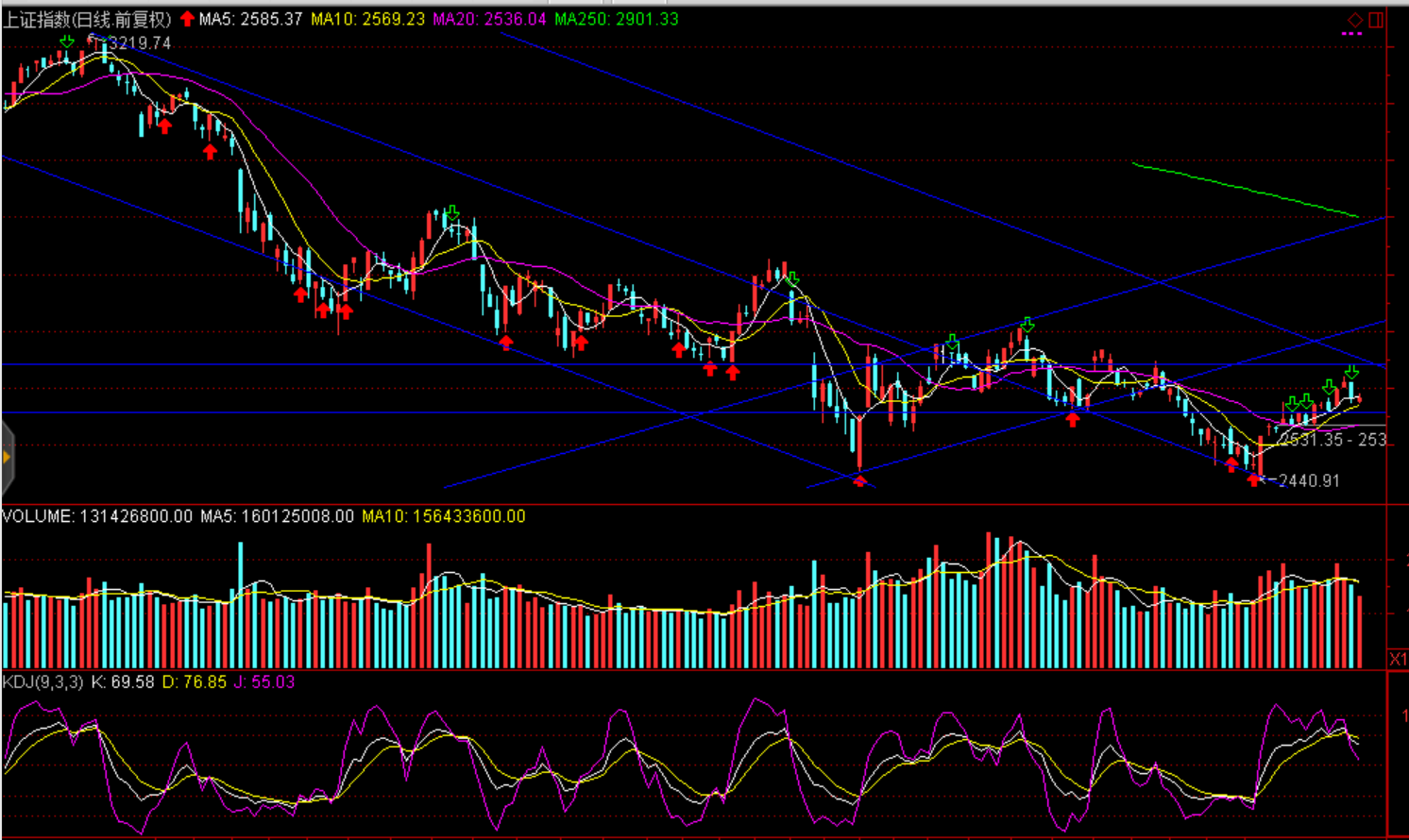 技術(shù)面:縮量整固,10日均線構(gòu)筑短期多空平衡,成交量進(jìn)一步萎縮至2000億元左右形成窒息量結(jié)構(gòu)則可視為調(diào)整結(jié)束跡象;滬指2500--2600點(diǎn)運(yùn)行,今日支撐2574點(diǎn)、壓力2591點(diǎn)。