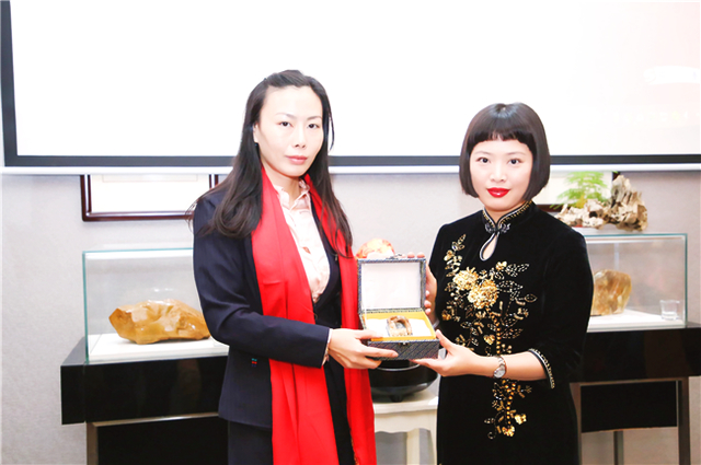 自古書法印章不分家,作品必須蓋印才算完整。本次活動場地提供田黃博物館、希雍天石董事長繆建生為到場嘉賓和校友,受邀分享田黃石科普知識,介紹歷經(jīng)1.8億萬年形成的田黃石種類及特點。 歡聚活動上,田黃博物館特別挑選了一枚“溫、潤、細、膩、凝、潔” 、印面方正碩大,雙龍雕刻立體,栩栩如生的昌化田黃貫斗雙龍印璽,捐贈給文學社。 收到如此珍貴的禮物,求是文學社秘書長樓蓉表示:非常感謝田黃博物館的支持與厚禮,后期將委托機構對這塊印石義拍或義賣,所得將以求是文學社和田黃博物館名義,捐贈給公益項目,會讓這一珍貴的禮物,發(fā)揮更多的社會價值。