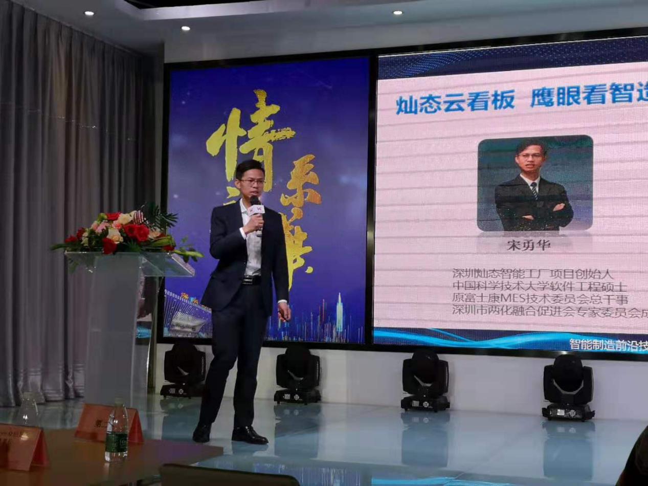燦態(tài)信息總經(jīng)理宋勇華是原富士康集團(tuán)MES技術(shù)委員會(huì)總干事,他以18年富士康智能制造系統(tǒng)實(shí)踐經(jīng)驗(yàn)、100多個(gè)工廠信息化智能項(xiàng)目沉淀工作經(jīng)歷介紹了面向中小企業(yè)的智能制造落地方案。其解決方案依據(jù)他原創(chuàng)的三屏看智造理念,即“燦態(tài)鷹眼云看板” SaaS產(chǎn)品,打造符合企業(yè)發(fā)展實(shí)際需要和高性價(jià)比的智能化平臺(tái),助力中小企業(yè)智能化務(wù)實(shí)落地。