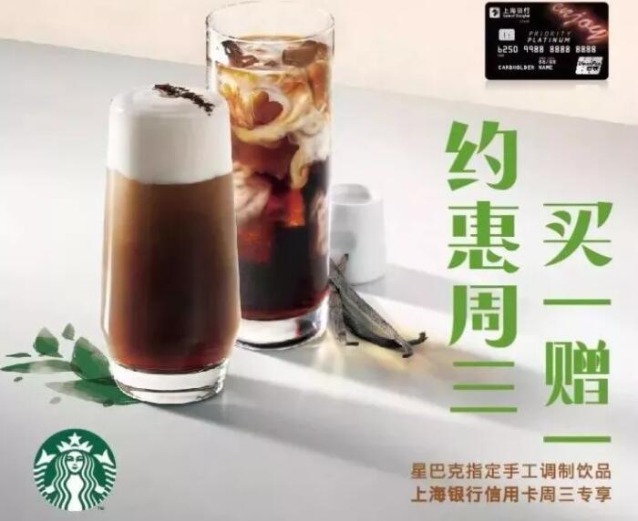 活動內(nèi)容:每周三持上海銀行信用卡實體卡片至深圳地區(qū)指定合作門店,資格驗證通過后刷卡即享指定手工調(diào)制飲品買一贈一。