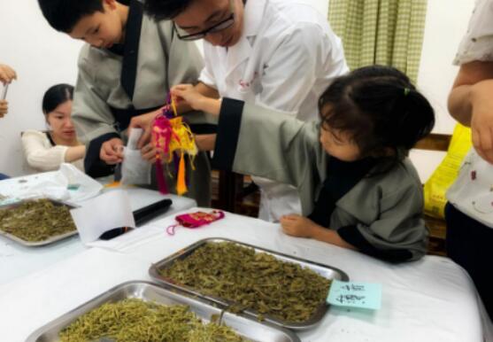 醫(yī)生還向“小中醫(yī)”們介紹了中醫(yī)理療知識,醫(yī)生將人體的經(jīng)絡比喻成公交路線,將點按穴位所產(chǎn)生的身體感應點比喻成公交車,用形象生動的方式給小中醫(yī)們講解了人體的經(jīng)絡構(gòu)成和中醫(yī)推拿、刮痧等的科學原理。最后,小中醫(yī)們還在指導下根據(jù)傳統(tǒng)的中草藥配方及功效制作了驅(qū)蚊香囊。這種別出心裁的“動手式”課程讓“小中醫(yī)”們進一步加深了對中醫(yī)的理解和體驗。