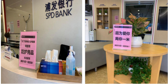 2月10日,在接到浦發(fā)深圳分行統(tǒng)一部署的復工安排后,科苑支行落實網(wǎng)點廳堂的各項防疫措施和人員復工的安全措施,在確保員工和客戶健康安全的前提下,全力保障各項金融服務需求。走進浦發(fā),可以看到廳堂多處區(qū)域配備了口罩、消毒液、一次性手套等防控物資,在廳堂顯眼處設計擺放了“因為愛你,離你一米”等暖心提示。其中,黨員同志們帶頭在廳堂進行宣傳指引,協(xié)助做好防護措施。