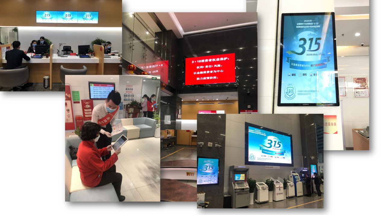 受疫情影響,在今年的3.15宣傳教育活動(dòng)期間,招商銀行深圳分行因時(shí)制宜,充分借助互聯(lián)網(wǎng)媒體渠道,加大線上宣教推廣力度。其中,原創(chuàng)漫畫(huà)、視頻等已在中國(guó)銀行業(yè)協(xié)會(huì)、中國(guó)人民銀行深圳市中心支行、招商銀行總行以及信用卡中心的官方微信、微博等各大平臺(tái)競(jìng)相上線,獲得了消費(fèi)者的廣泛好評(píng)。同時(shí),在手機(jī)銀行 App網(wǎng)點(diǎn)線上店開(kāi)辟“消保有招”3.15專欄,不斷開(kāi)創(chuàng)新的宣傳場(chǎng)景和消費(fèi)者觸點(diǎn)。結(jié)合電臺(tái)廣播交通頻率1062、新聞898、音樂(lè)971等傳統(tǒng)媒體平臺(tái)在早晚高峰期循環(huán)播放活動(dòng)主題,以短平快、覆蓋廣的方式大力推動(dòng)金融宣教工作,進(jìn)一步擴(kuò)充宣傳渠道和受眾面。同時(shí),以營(yíng)業(yè)廳為陣地,通過(guò)跑屏、電子海報(bào)機(jī)、電視等多媒體設(shè)備播放宣傳素材,多種渠道共同推廣打造立體宣教格局,覆蓋更多消費(fèi)者群體進(jìn)一步增強(qiáng)影響力。