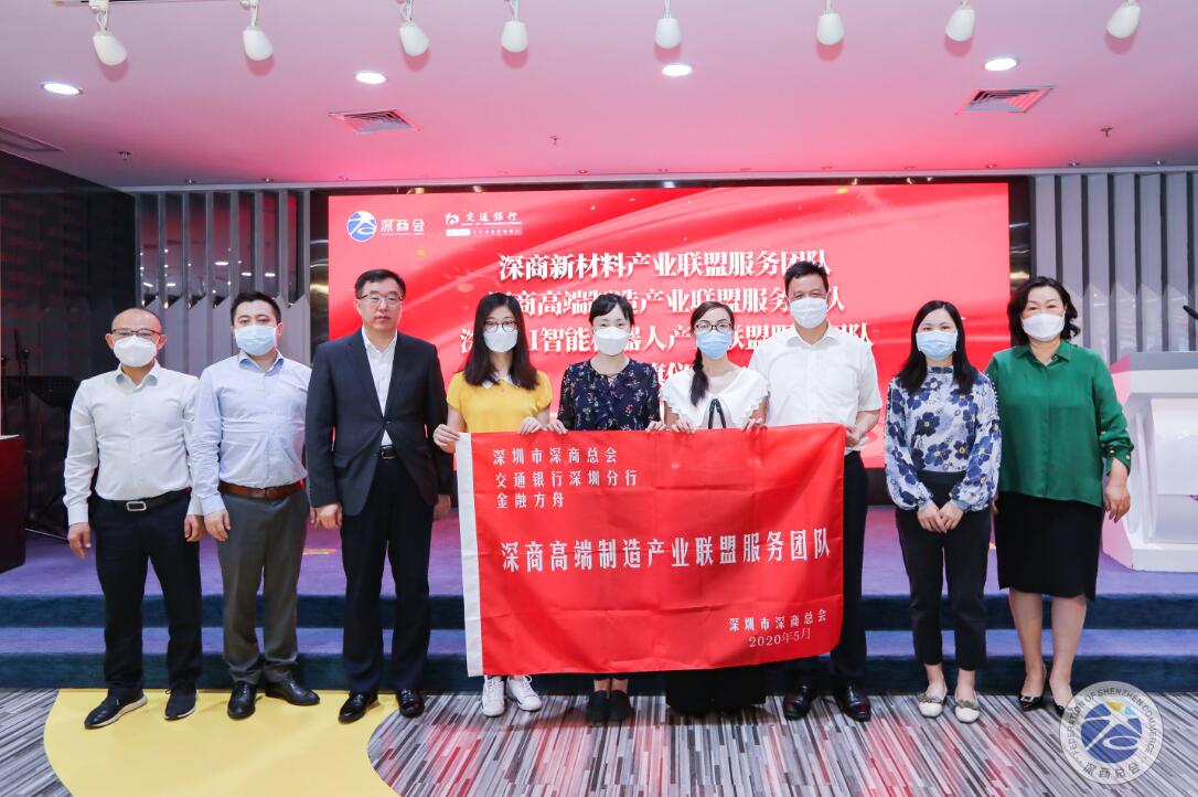 活動(dòng)啟動(dòng)儀式上,深圳市地方金融監(jiān)管局巡視員肖志家、交通銀行深圳分行胡剛副行長、深圳市深商總會林慧會長為交通銀行三支專業(yè)服務(wù)團(tuán)隊(duì)授予“深商產(chǎn)業(yè)聯(lián)盟服務(wù)團(tuán)隊(duì)”旗幟,標(biāo)志著深圳交行與深商總會、深商產(chǎn)業(yè)聯(lián)盟翻開合作的嶄新篇章。深圳交行和深商總會,將持續(xù)聚焦高端先進(jìn)制造、戰(zhàn)略新興產(chǎn)業(yè)、未來產(chǎn)業(yè),共同開展“暖企行”企業(yè)調(diào)研活動(dòng),各展其能、協(xié)同作戰(zhàn),為深商新材料、深商高端制造、深商AI智能機(jī)器人等產(chǎn)業(yè)聯(lián)盟全方位傾斜資源,提供更有效率、更有活力、更加優(yōu)質(zhì)的金融支持,助推企業(yè)加快復(fù)工復(fù)產(chǎn)、達(dá)產(chǎn)增產(chǎn)。
