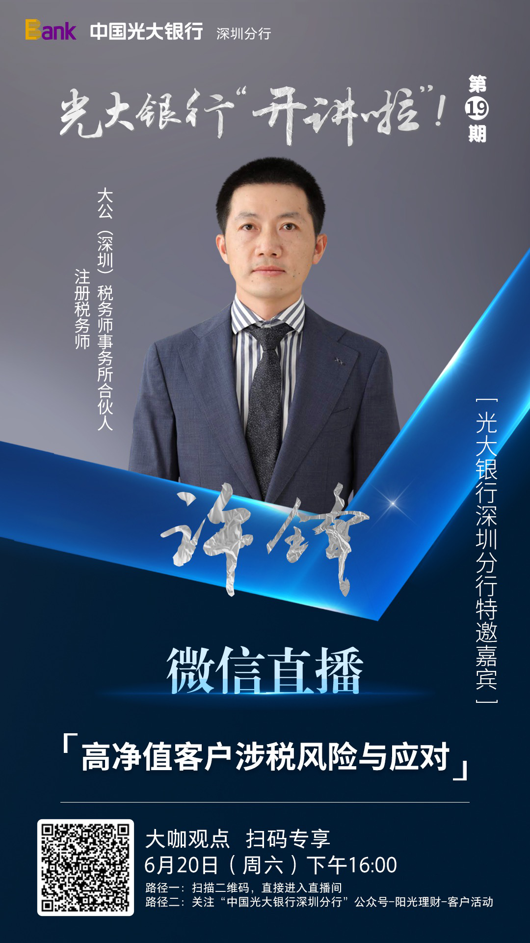 見(jiàn)證客戶端?深圳新聞網(wǎng)2020年6月19日訊 6月20日,光大銀行深圳分行攜手大粵教育,在線開(kāi)講第十九期《光大銀行"開(kāi)講啦“!》公益課堂。