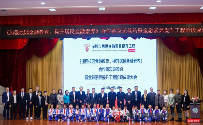 深圳新聞網·見圳客戶端2020年12月29日訊 近日,由中國人民銀行深圳市中心支行、深圳銀保監(jiān)局、深圳證監(jiān)局、深圳市地方金融監(jiān)督管理局、深圳證券交易所、深圳市教育局、福田區(qū)人民政府主辦,深圳市民政局協辦的《加強校園金融教育,提升居民金融素養(yǎng)》合作備忘錄簽約暨金融素養(yǎng)提升工程階段成果大會在福田實驗僑香學校舉行。深圳市政府、相關機構領導,市各金融機構代表、市區(qū)中小學校領導、街道社區(qū)負責人以及僑香學校的師生們等逾200人出席了大會。
