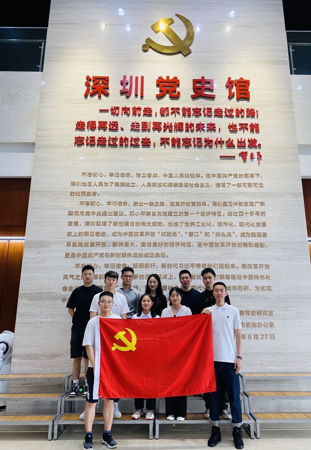 離開陵園,浦發(fā)銀行深圳分行的黨員們?cè)谏钲邳h史館向青年員工介紹了深圳地區(qū)在中國(guó)共產(chǎn)黨領(lǐng)導(dǎo)下進(jìn)行革命、建設(shè)和改革的不懈奮斗史以及取得的輝煌成就。大家一起在黨史館門口誦讀,“一切向前走,都不能忘記走過的路;走得再遠(yuǎn)、走到再光輝的未來,也不能忘記走過的過去,不能忘記為什么出發(fā)”。
