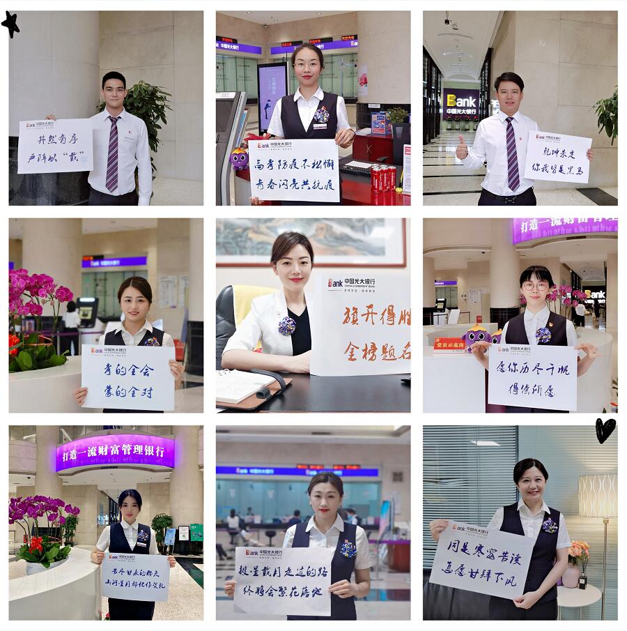 除了在網(wǎng)點提供服務(wù),光大銀行深圳分行還組織員工通過微信朋友圈及周邊宣傳等方式,為高考學(xué)子加油打氣,祝福所有的高考學(xué)子旗開得勝,金榜題名。這種主動擴大服務(wù)范圍、為高考護(hù)航的溫暖點滴,是光大銀行深圳分行貫徹落實陽光服務(wù),切實履行金融機構(gòu)社會責(zé)任的一個縮影。