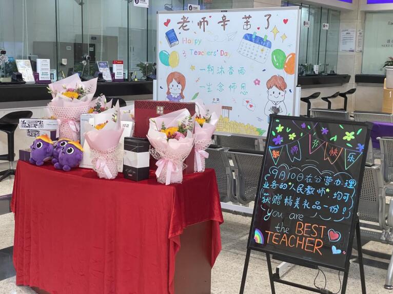 深圳新聞網(wǎng)2021年9月10日訊 (記者 朱琳 通訊員 樓蓉 沈婷)金秋九月,秋高氣爽,為迎接第37個教師節(jié),深圳分行開展“感恩教師節(jié)”系列活動,部分網(wǎng)點通過教師節(jié)專屬活動,為廣大教師客戶送上了節(jié)日的鮮花。9月10日,在深圳分行營業(yè)部辦理業(yè)務的人民教師均可獲贈精美禮品一份。