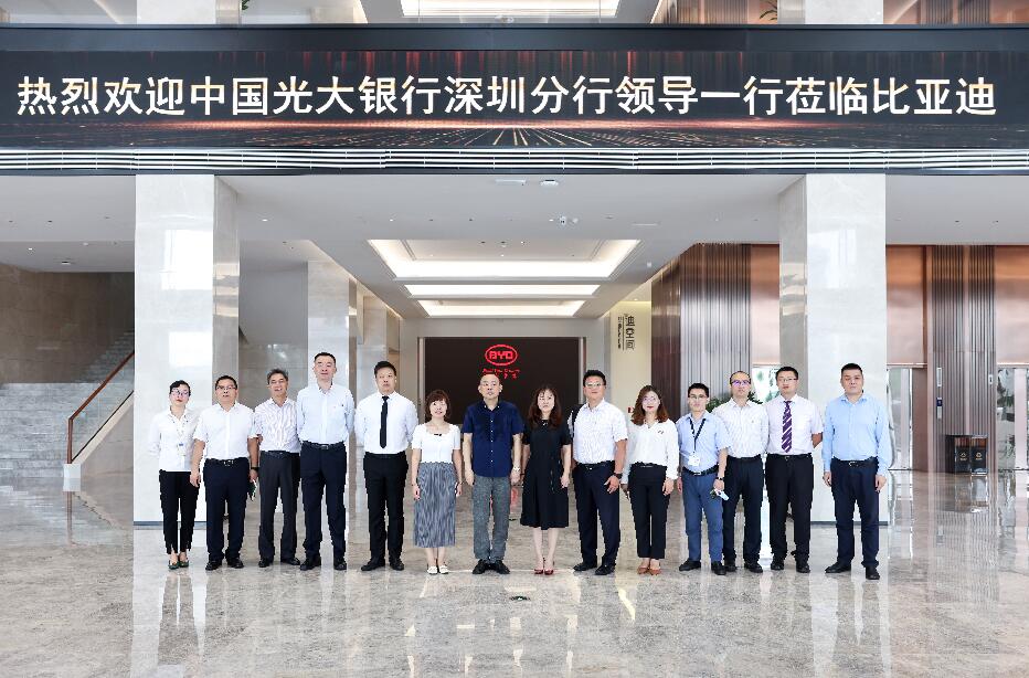2018年12月11日,光大集團與比亞迪在中國光大中心簽署戰(zhàn)略合作協議。次年9月,李曉鵬董事長前往深圳調研比亞迪,與比亞迪董事長兼總裁王傳福進行工作會談,雙方合作更為密切。2021年6月9日,光大銀行深圳分行行長韓學智率隊拜訪比亞迪集團,雙方就踐行國家“創(chuàng)新、協調、綠色、開放、共享”發(fā)展理念,進一步落實中國光大集團與比亞迪集團重要戰(zhàn)略合作協議,深化綜合金融服務,加強協同聯動發(fā)展等方面進行座談,為下一步光大銀行與比亞迪集團的合作打下堅實的基礎。