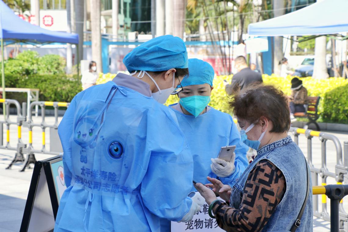 自3月9日起,中國太保壽險(xiǎn)深圳分公司志愿者每天分兩批前往蓮花一村社區(qū)核酸點(diǎn)開展志愿服務(wù)。在社區(qū)入口,他們嚴(yán)守“入口關(guān)”,輕聲提醒社區(qū)居民和訪客掃描“場所碼”,認(rèn)真查驗(yàn)每一位居民和訪客的健康碼情況;在核酸服務(wù)隊(duì)伍,他們耐心維持隊(duì)伍秩序,提醒居民做好自我防護(hù)、保持一米距;在核酸服務(wù)綠色通道處,他們以熱情的態(tài)度詳細(xì)解答居民的疑惑,指導(dǎo)老人、小孩和特殊人群掃碼、填寫資料;在居民樓里,他們拿著小喇叭,一層樓一層樓地提醒居民們下樓做核酸......他們?nèi)σ愿?,以扎?shí)的工作、貼心的服務(wù)當(dāng)好疫情聯(lián)防聯(lián)控的“守門員”“服務(wù)員”“宣傳員”,用實(shí)際行動(dòng)點(diǎn)起了陰霾下幾抹火紅的溫暖,架起了抗疫防疫“暖心橋”。