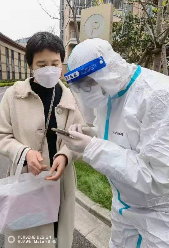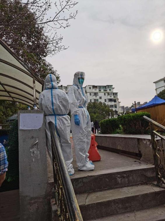 同樣化身“大白”的還有劉濮銘,他協(xié)助醫(yī)護(hù)人員對小區(qū)做抗原檢測,幫7棟樓200余老人做二維碼登記、檢測,在小區(qū)有樓棟確診后迅速加入守樓執(zhí)勤,維持秩序,防止交叉感染。