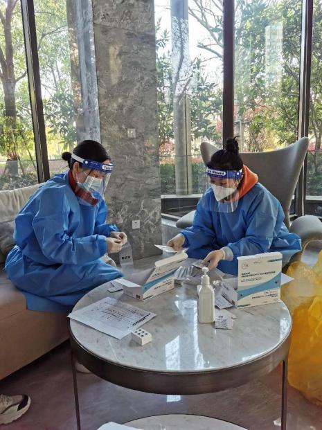 上圖:石蓉協(xié)助社區(qū)核酸檢測工作開展