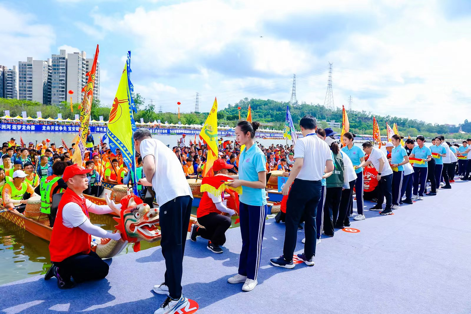 活動(dòng)在鏗鏘有力的鼓點(diǎn)《龍鼓起舞》中拉開帷幕,隨后深圳農(nóng)商銀行相關(guān)負(fù)責(zé)人受邀與眾嘉賓一起為龍舟點(diǎn)睛,龍舟點(diǎn)睛是龍舟競(jìng)渡前舉行的傳統(tǒng)儀式,是傳統(tǒng)龍舟文化的主要內(nèi)容之一。經(jīng)過激烈的比拼,新會(huì)泓達(dá)堂陳皮龍舟隊(duì)榮獲粵港澳男子組冠軍,東莞萬江南方科技龍舟隊(duì)榮獲粵港澳女子組冠軍,燕羅街道塘下涌江夏黃氏龍舟隊(duì)獲得本地組第一名。