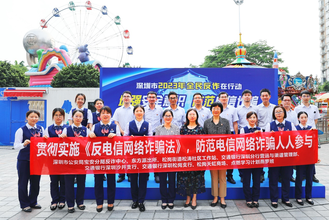 讀特客戶端·深圳新聞網(wǎng)2023年6月1日訊(記者 朱琳 通訊員 張?zhí)駥帲檫M(jìn)一步提高群眾防范各類電信詐騙安全意識,有效打擊詐騙犯罪,預(yù)防和減少電信詐騙案件的發(fā)生,廣泛宣傳落實《反電信網(wǎng)絡(luò)詐騙法》,6月1日,交通銀行深圳分行聯(lián)合深圳市公安局寶安分局反詐中心、松崗街道辦、東方派出所、松濤社區(qū)工作站、松崗天虹商場開展了主題為“2023年全民反詐在行動——增強安全意識,防范電信詐騙”的戶外片區(qū)反詐宣傳活動。
