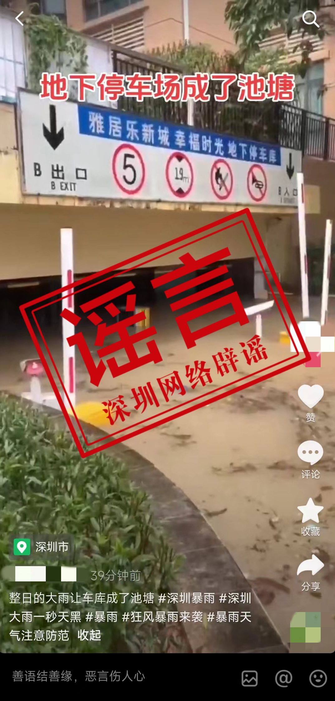 深圳新聞網(wǎng)2024年5月4日訊(記者 李紫晴)5月4日,抖音有網(wǎng)民發(fā)帖稱深圳整日大雨讓車庫成了池塘。視頻顯示為雅居樂新城幸福時(shí)光地下停車庫。