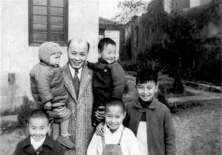 1947年初,6歲的但昭義(前排左起第一)同父親兄弟合影。(胡蕾翻拍)