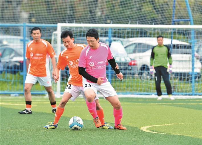 ▲“深圳杯”媒體賽,深圳特晚聯(lián)隊(duì)球員(右一)積極拼搶。