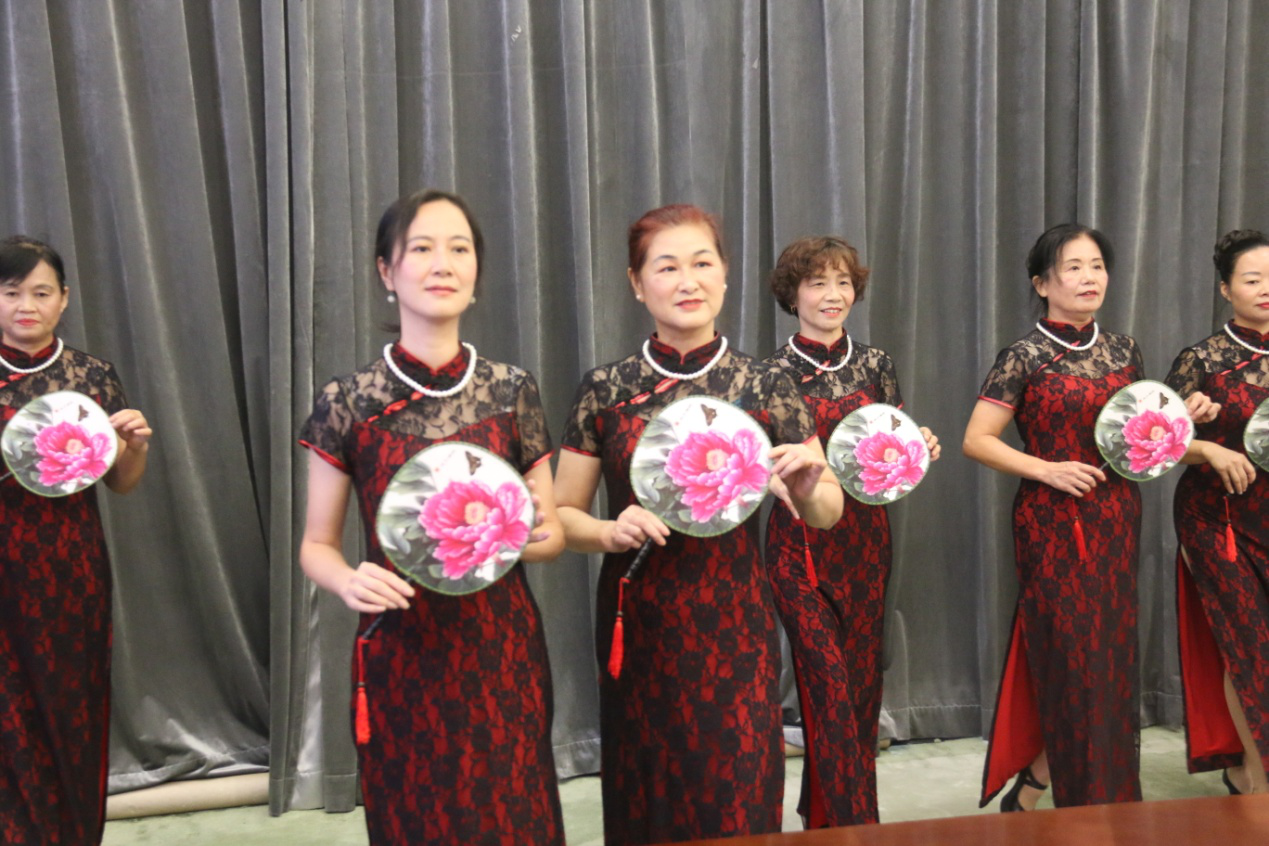 眾人矚目的文藝展演終于來(lái)了,社區(qū)居民的表演可圈可點(diǎn)、耐人尋味。旗袍秀詩(shī)誦《春江花月夜》,詩(shī)美、舞美、樂(lè)美、人更美,以故為新,別具一番味道;《將進(jìn)酒》詩(shī)舞誦也頗有看頭,從服裝、道具、編排處處有新意,足見(jiàn)大家的用心,將詩(shī)詞、舞蹈與音樂(lè)融于創(chuàng)作中,給在場(chǎng)居民帶來(lái)了耳目一新的觀賞體驗(yàn)。