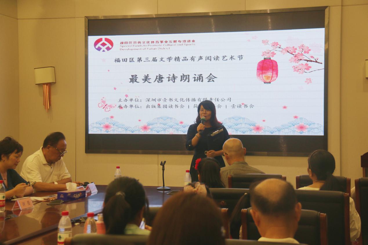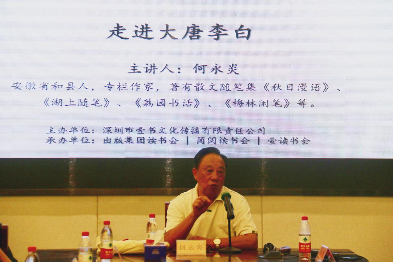 深圳新聞網(wǎng)訊 2019年8月31日下午,“福田區(qū)第三屆文學精品有聲閱讀藝術(shù)節(jié)”之“唐詩三百首”專場活動“走進大唐李白”公益文化講座暨最美唐詩朗誦會在簡閱書吧香蜜湖店三樓多功能室成功舉辦?;顒佑缮钲谑幸紩幕瘋鞑ビ邢挢熑喂?、深圳市書城文化投資控股有限公司主辦,出版集團讀書會、簡閱讀書會和壹讀書會承辦,本次活動吸引了眾多對中國傳統(tǒng)文化富有興趣的詩歌愛好者,活動開始前已座無虛席,靜候這場關(guān)于李白、關(guān)于詩歌的文化盛宴。
