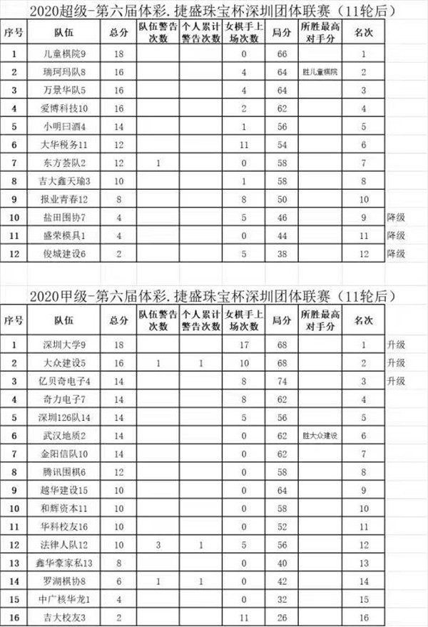附錄:深圳市第六屆圍棋聯(lián)賽超級(jí)組、甲級(jí)組最終比賽結(jié)果