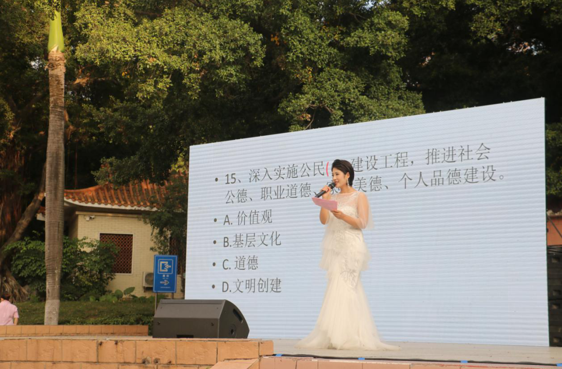 “放歌新時代 文明進(jìn)萬家”文藝巡演由深圳市寶安區(qū)西鄉(xiāng)街道辦主辦,深圳市寶安區(qū)西鄉(xiāng)街道愛之聲藝術(shù)團(tuán)承辦,寶安區(qū)宣傳文化體育發(fā)展專項資金資助。來自愛之聲藝術(shù)團(tuán)的深圳一線文藝工作者們通過文藝表演的形式為廣大居民奉獻(xiàn)精彩的文藝大餐,用群眾喜聞樂見的形式展示西鄉(xiāng)發(fā)展變化,再現(xiàn)有志之士在西鄉(xiāng)干事創(chuàng)業(yè)、成就夢想的情景,并宣傳了黨的十九屆五中全會精神,深受群眾歡迎。