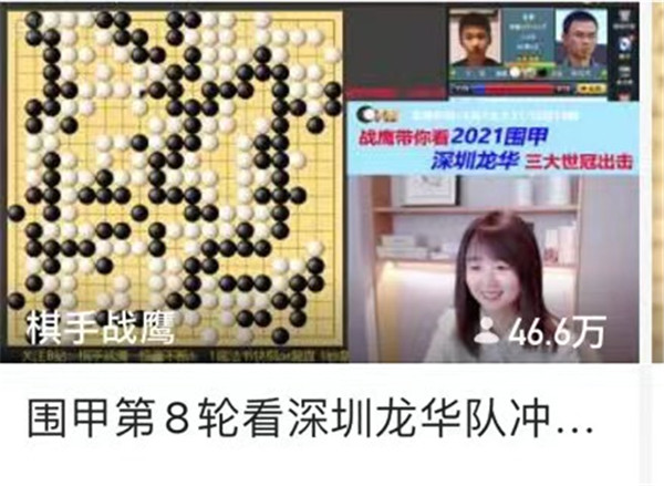 形勢大好,深圳龍華隊網上直播合作人,虎牙直播間圍棋知名主播戰(zhàn)鷹這里自然也是“門庭若市”,人數沖上46萬大關。賽后,石豫來到直播間作客,小帥哥自然受到熱捧!深圳龍華隊的后續(xù)戰(zhàn)況仍將在這里直播哦,關注戰(zhàn)鷹講棋,人美、棋強、口才好,是知名的圍棋主播。