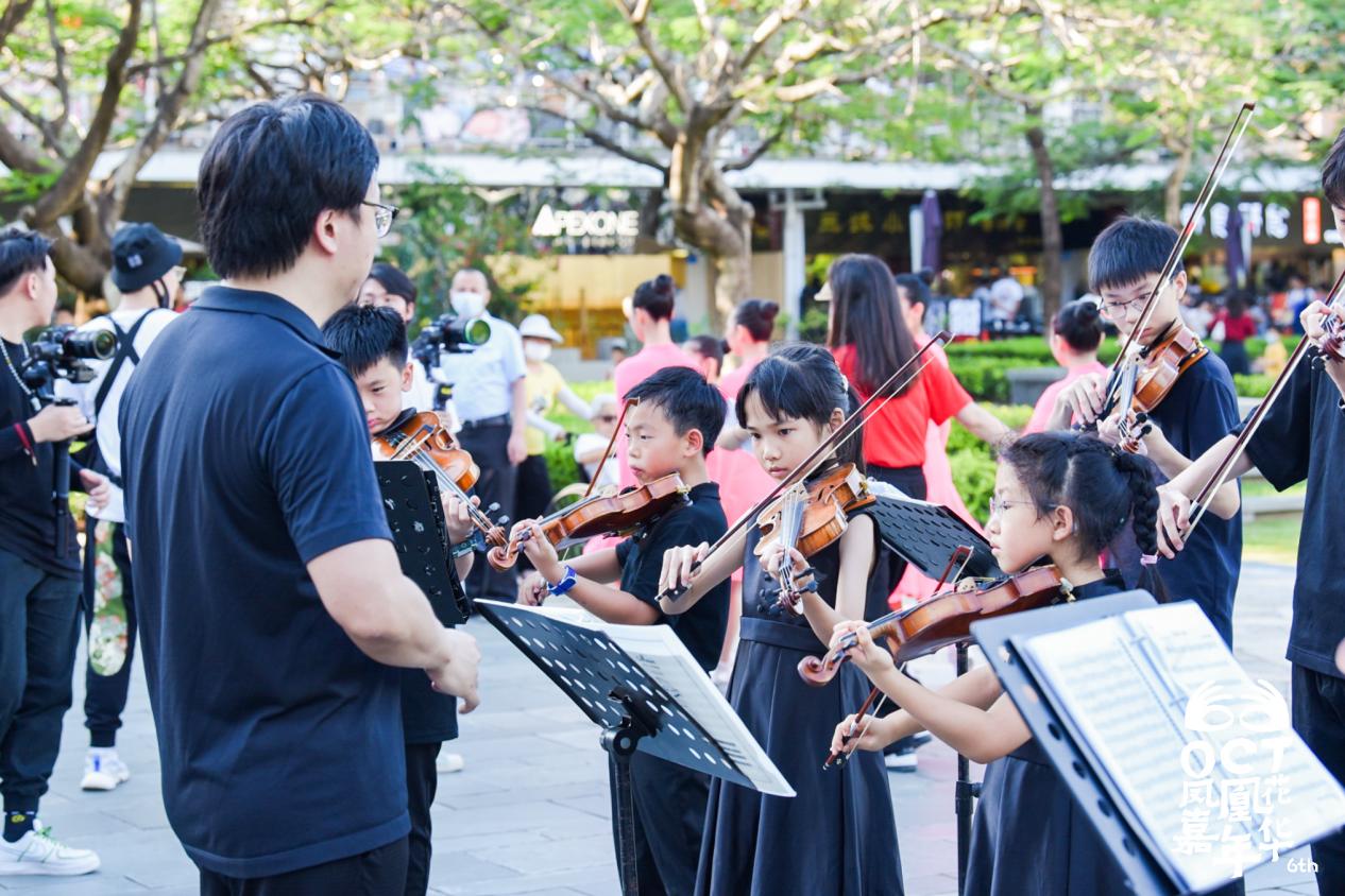 芭蕾高雅、拉丁熱情、小提琴聲悠揚(yáng)……深圳華夏藝術(shù)中心小朋友們的精彩表演吸引了眾多嘉賓駐足欣賞。啟動(dòng)儀式過后,與會嘉賓來到場外,欣賞精彩的快閃表演、逛“我們正當(dāng)紅”·自然市集,前往華僑城體育中心旁的綠地參與“鳳凰花之夜”·電影放映會,盡情領(lǐng)略自然與藝術(shù)的融合之美。