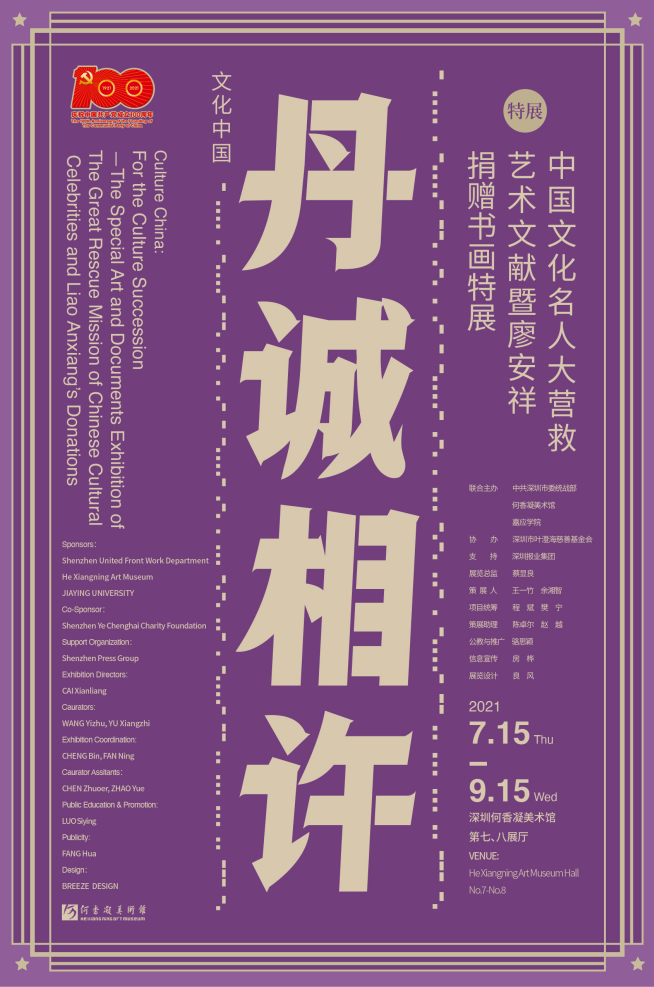 據了解,“文化中國:丹誠相許——中國文化名人大營救藝術文獻暨廖安祥捐贈書畫特展”持續(xù)展出至9月15日,期間何香凝美術館將繼續(xù)推出一系列公共教育活動。