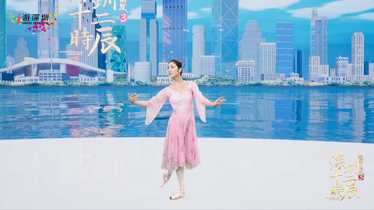 深圳歌劇舞劇院副院長(zhǎng)、國(guó)家一級(jí)演員李晨晨在虛擬演播室翩翩起舞,深圳市音樂(lè)家協(xié)會(huì)副主席、國(guó)家一級(jí)演員楊樂(lè)現(xiàn)場(chǎng)獻(xiàn)唱??萍寂c藝術(shù)交融,為深圳旅游蓬勃發(fā)展獻(xiàn)上美好的祝愿。