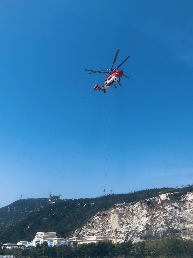 此次KA32直升機(jī)吊裝驗證飛行,由海直通航與長隆建設(shè)工程有限公司、波馬嘉仕其(北京)索道有限責(zé)任公司共同組織開展,三家公司在數(shù)月前就開展驗證飛行進(jìn)行多次交流探討,對起吊和放貨場地進(jìn)行多次現(xiàn)場勘查,研究分析技術(shù)難點,制定了詳細(xì)的飛行方案和安全預(yù)案。
