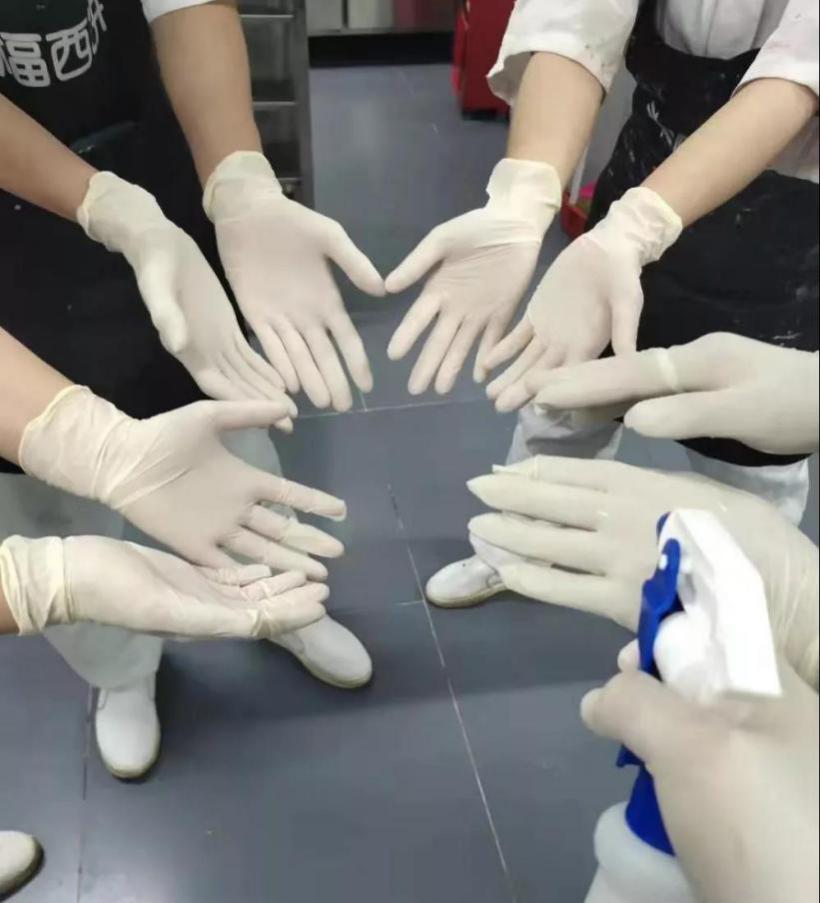 幸福西餅保證疫情防控期間,在崗所有員工都有足夠的醫(yī)用口罩供使用,并根據(jù)要求培訓(xùn)口罩的佩戴與摘除標(biāo)準(zhǔn),在上崗之前嚴(yán)格檢查口罩的佩戴情況。