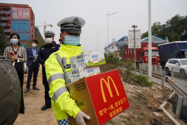 你們在一線戰(zhàn)疫,我們來為你補給!隨后,市關(guān)愛辦攜手伊利集團、麥當勞先后前往光明羌下公安檢查站、寶安區(qū)松安防疫檢查點,為正在一線忙碌的工作人員,送上愛心牛奶與熱乎乎的愛心午餐。“你們辛苦了”、“繼續(xù)加油”……每發(fā)放一次牛奶與午餐,工作人員都不忘了戰(zhàn)疫者們致敬致謝。