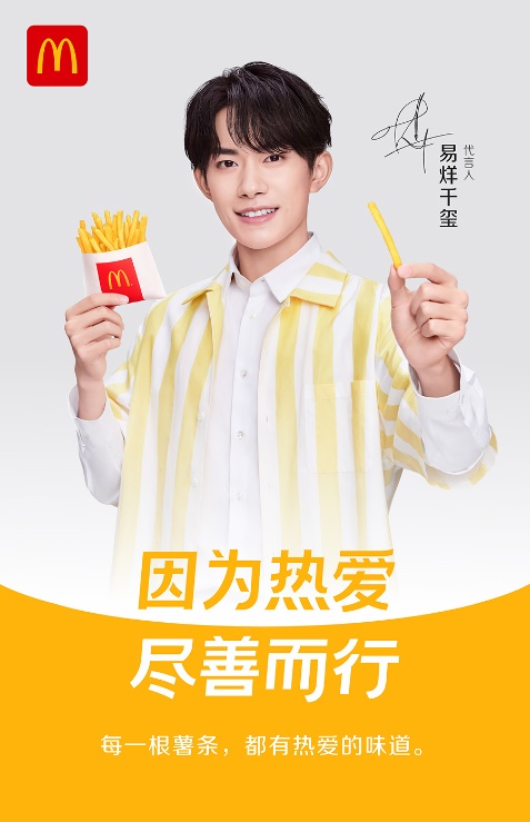 作為千禧一代的杰出代表,易烊千璽自小堅(jiān)守對(duì)藝術(shù)的熱愛(ài),以百煉成鋼的執(zhí)著對(duì)待每一段旋律、每一個(gè)舞步、每一句臺(tái)詞,只為在每一束聚光燈下綻放無(wú)瑕光芒。他熱愛(ài)挑戰(zhàn),不斷拓展自身發(fā)展的邊界,作為優(yōu)秀的演員、歌手和舞者,一次次呈現(xiàn)驚喜。同時(shí),他身體力行做公益,用行動(dòng)詮釋榜樣力量,是充滿(mǎn)正能量的青年偶像。易烊千璽的成長(zhǎng)經(jīng)歷與個(gè)人發(fā)展和麥當(dāng)勞“因?yàn)闊釔?ài),盡善而行”的品牌理念不謀而合,也因此促成了這次惺惺相惜的合作。